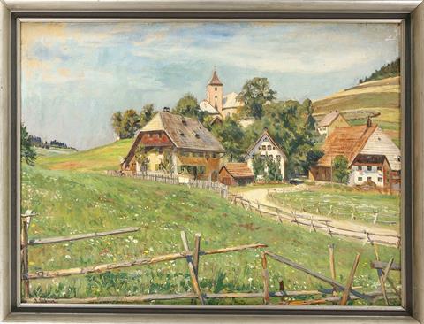 dt. Dorf in hügeliger Landschaft,