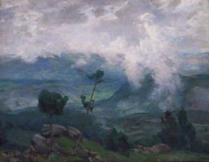 Nach dem Gewitter. Landschaft mit aufsteigendem Nebel