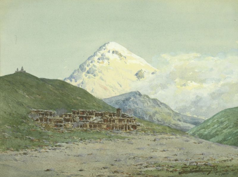 Karavanserei am Fuße des Kasbek im Kaukasus