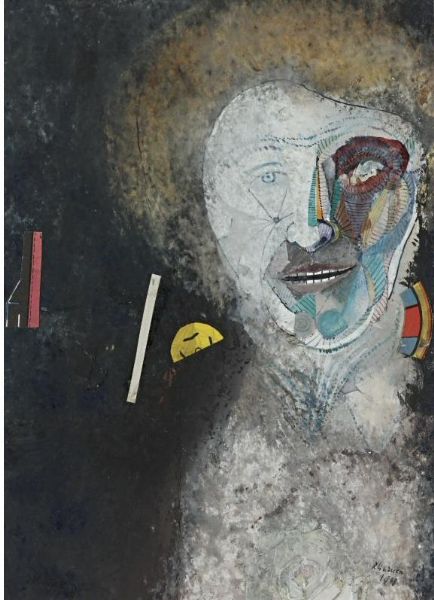 | Ink gouache, watercolor, colored chalk and printed paper collage on paperboard | |