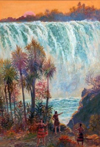 Maoris near the Omiru Falls, Wairau, North Island, New Zealand