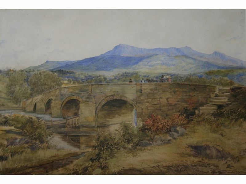 HORSE AND CARRIAGE ON A STONE BRIDGE (IRELAND OR SCOTTISH HIGHLANDS?)