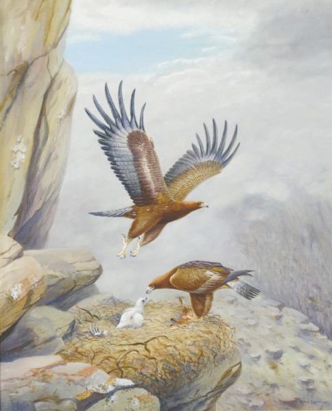 Pair of Golden Eagles and their Eaglet