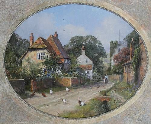 A Dorset village scene, figures on a path