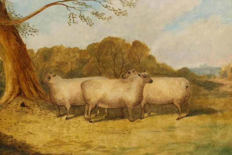 Sheep before a parkland setting
