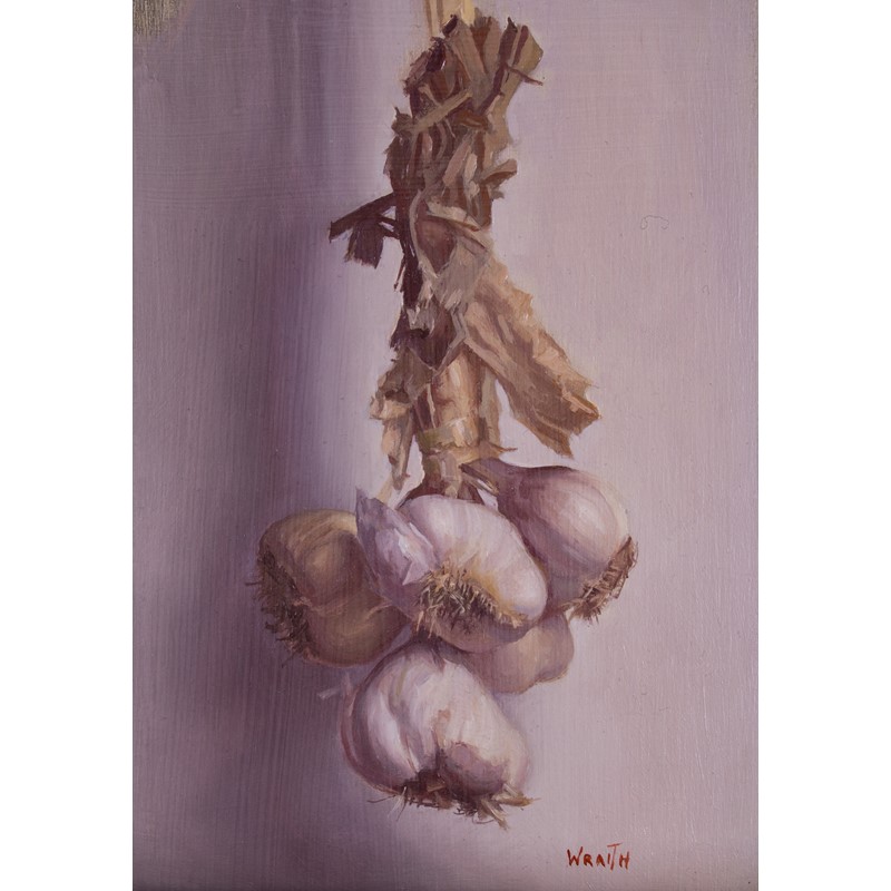 Still life of hanging garlic