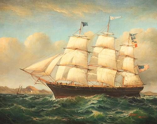 Fully Rigged Ship at Sea