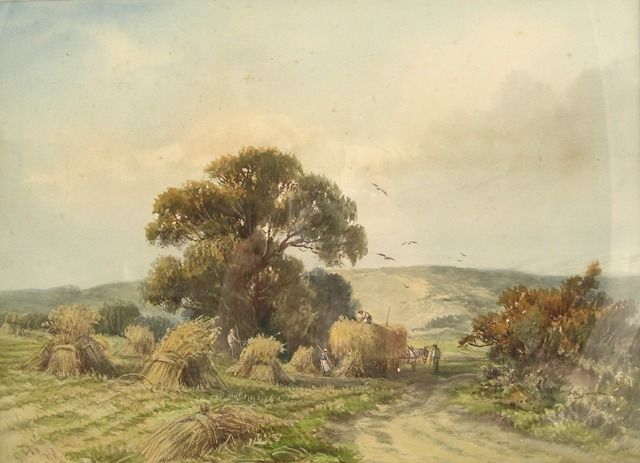 Gathering the corn, with figures around a cart