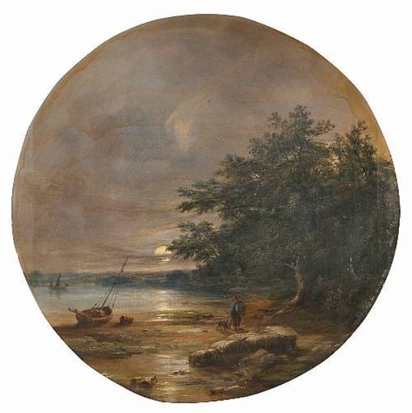 Figure on a shore by moonlight, possibly the Orwell
