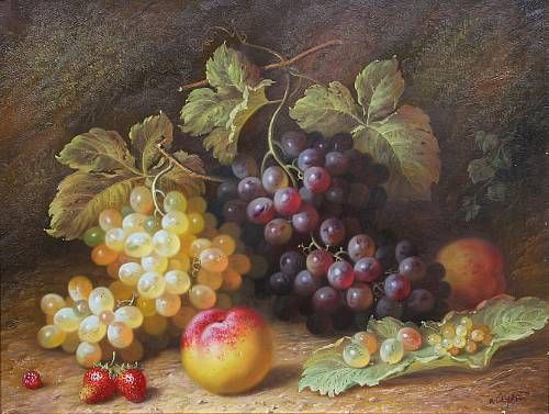 Black and green grapes, peaches, gooseberries, white currants and strawberries