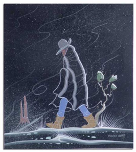 a robed Navajo man at night.