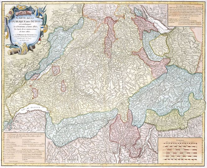 Svájc 13 kantonjának térképe, 1756