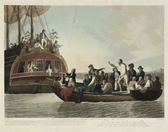 | The Mutineers turning Lieut. Bligh and part of the officers and crew adrift from His Majesty's Ship The Bounty | |
