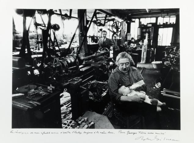 | Le biberon d'Alexis dans un atelier de mécanique à Saint-Maur (Val-de-Marne), années 1950/1960 | |