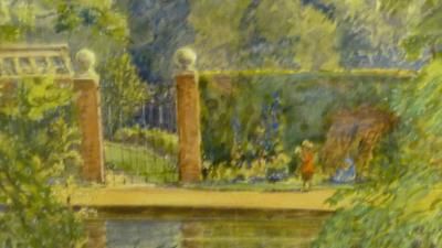 Garden Scene with Rose Arbour
