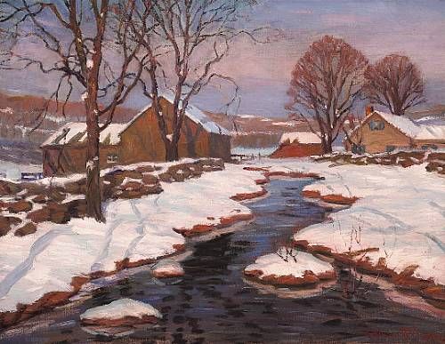 Winter Stream at Sunset