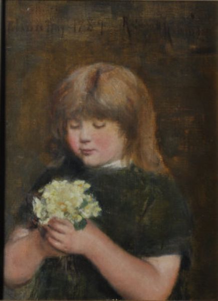 Young girl holding a posy of primroses