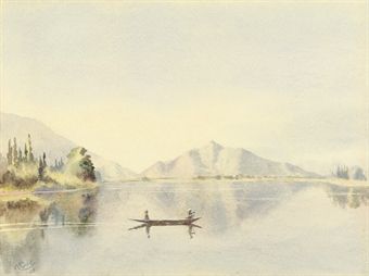 Figures in a boat on a Lake in Kashmir