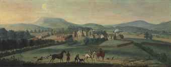 | A view of the ruined Westby Hall, Yorkshire, with a hunting party in the foreground | |