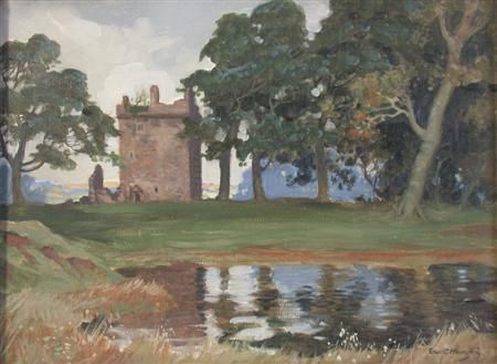 LANDSCAPE WITH POOL, TREES AND CASTLE