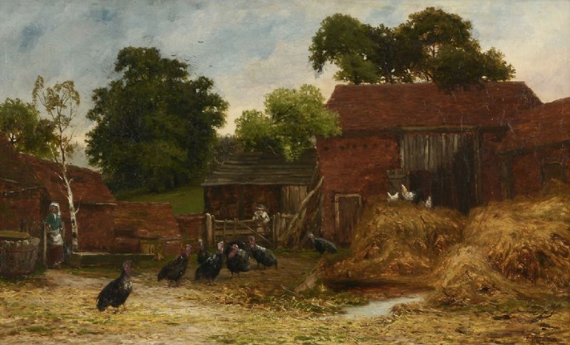 Turkeys in a farmyard
