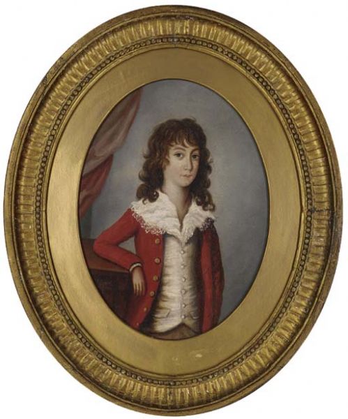 | Portrait of a young boy, half-length, in a red coat, with a white waistcoat and lace collar | |