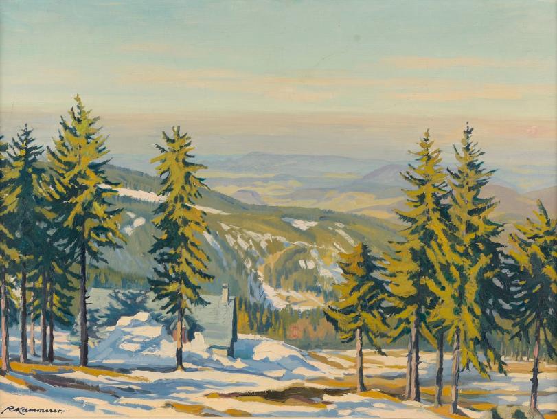 | La vallée enneigée aux mélèzes et aux sapins. | |