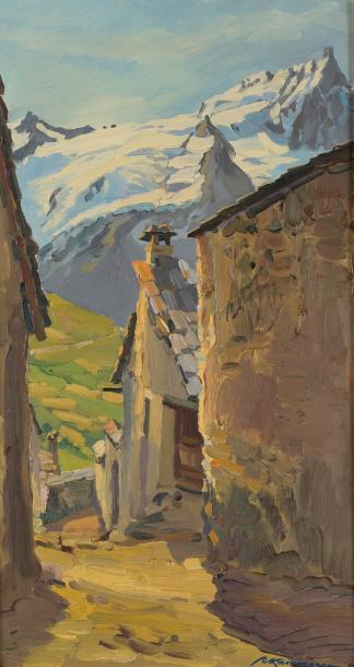 | Ruelle de village de montagne et Vallée au début de l'automne. | |