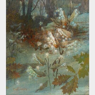 ''Milkweed Pods in Snow''- oil on board, signed Robert Laessig lower left. 24 x 21'' | |