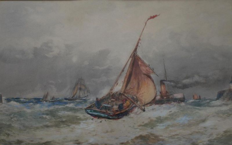 FISHING BOATS AND A PADDLE STEAMER IN ROUGH INSHORE WATERS