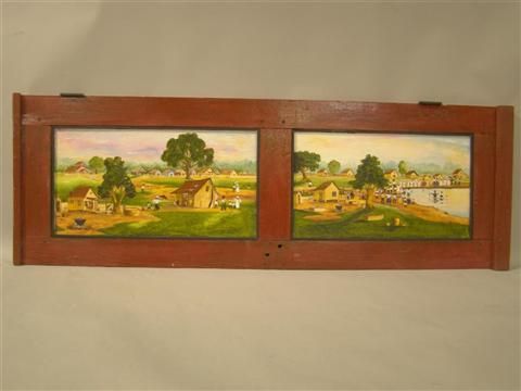 TWO FOLK ART SCENES ON A WOODEN DOOR