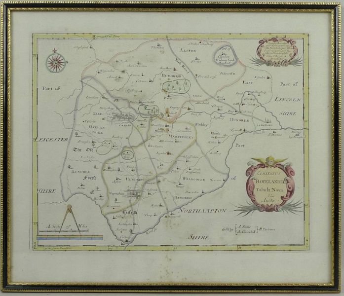 a hand coloured engraving map of Rutland