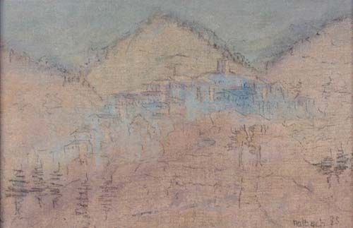 Südländisches Gebirgsdorf, im Hintergrund Berge