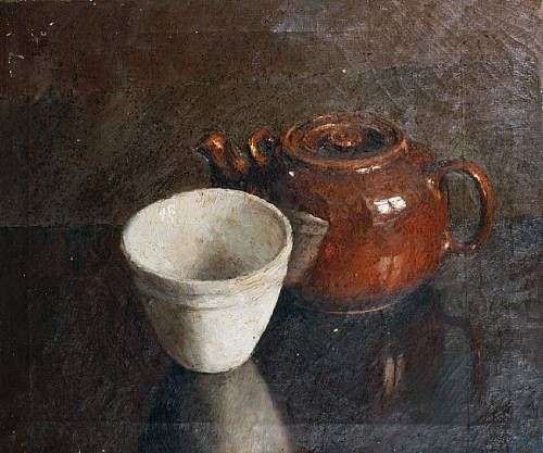Still life, teapot and white bowl