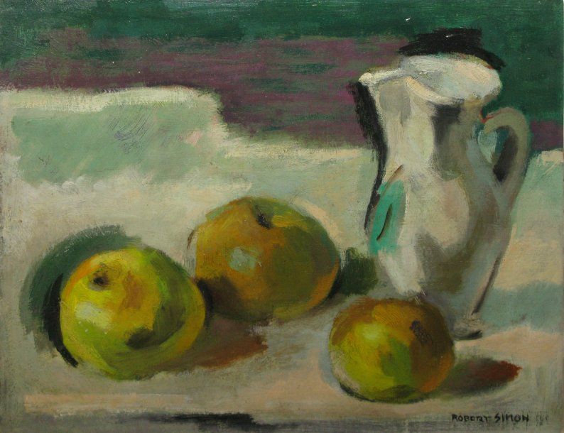 Nature morte au pichet blanc et pommes