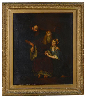 A historical scene, probably King Lear & Cordelia