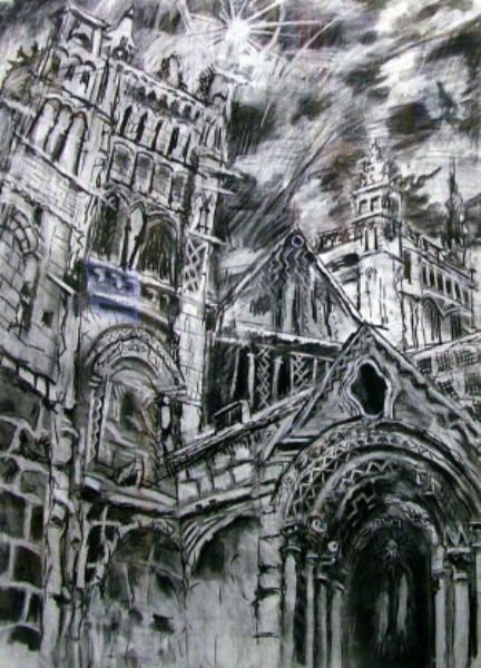 Charcoal and black crayon