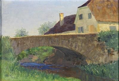| Studium an der Landeskunstschule Graz) Landschaft mit Bogenbrücke | |