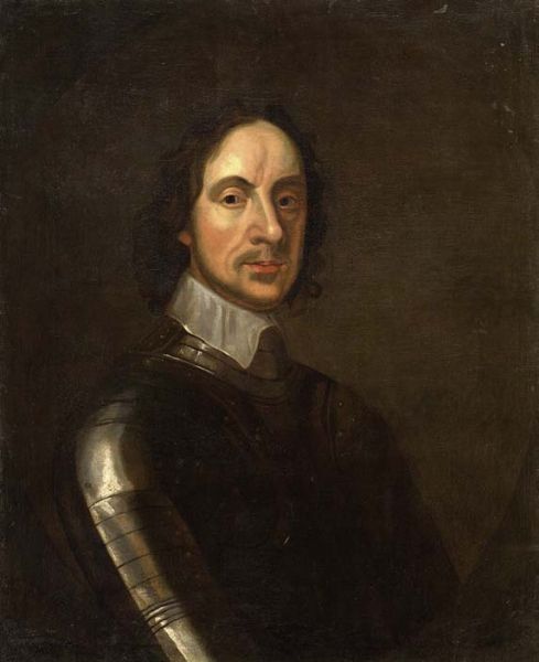 Brustbildnis Oliver Cromwells vor dunklem Fond in Rüstung