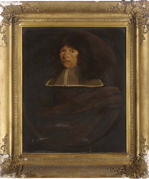 | Portrait of a member of the Lacon family, half-length, in a white collar and dark wrap, in a feigned oval | |