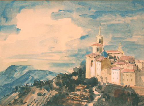 Watercolor with gouache over pencil traces, framed