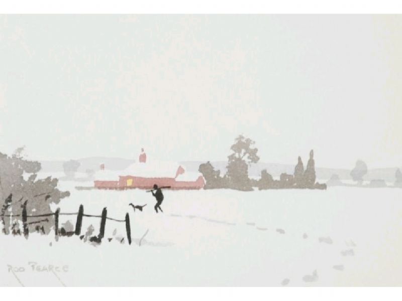 Pair of rural snow scenes of cottages within snow covered landscapes