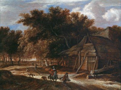 Huntsmen in a wooded landscape
