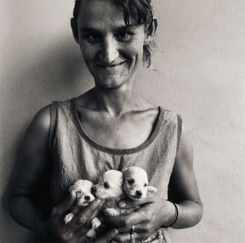 | WIFE OF ABATTOIR WORKER HOLDING THREE PUPPIES, ORANGE FREE STATE | |