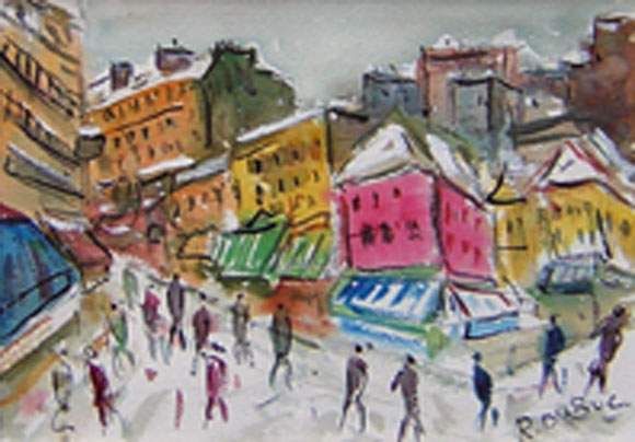 MONTMARTRE, RUE DES ABBESSES SOUS LA NEIGE