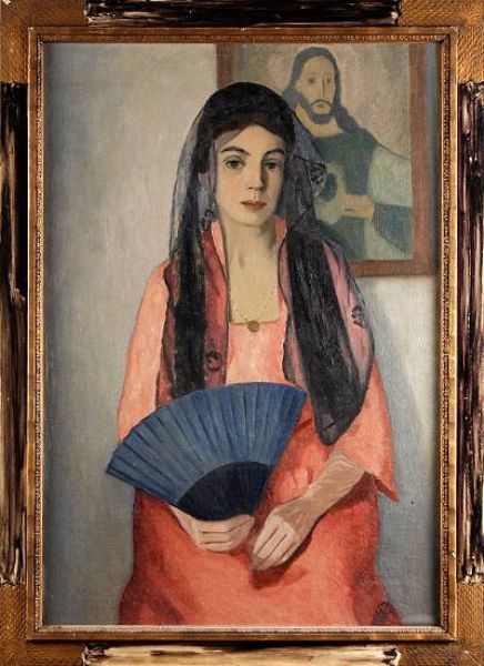 Kvinnofigur med solfjäder