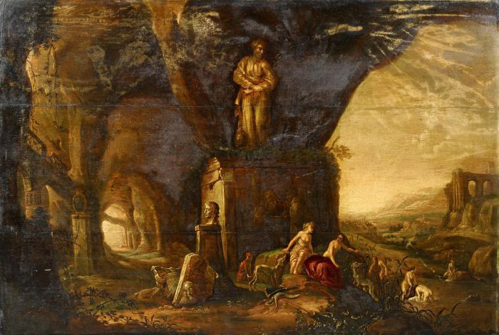 | Diana, Goddess of the Hunt, with Entourage in front of a Ruined Landscape | |