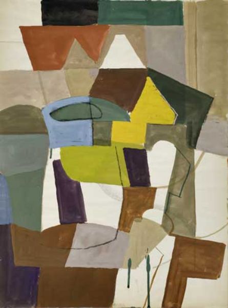 Gouache and charcoal on cream laid paper