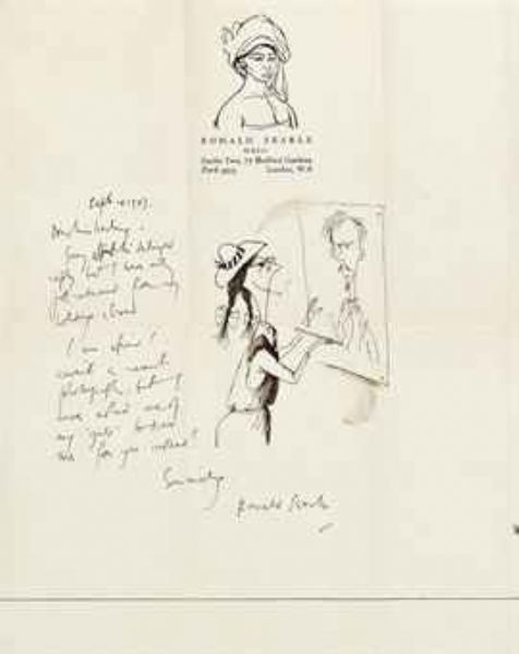 | A letter to Miss Kerley from Ronald Searle with a schoolgirl from St. Trinian's drawing a portrait of him | |