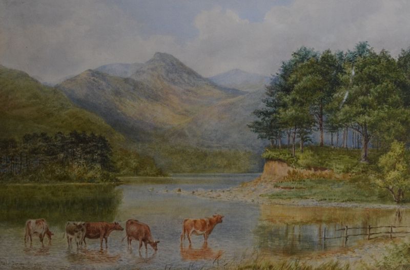 Cattle Watering in a Summer Landscape Lake Derwent Water